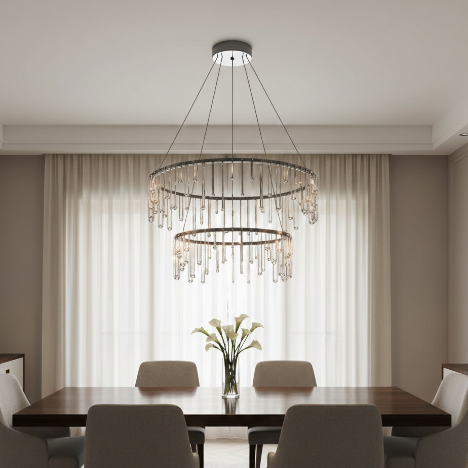 Scintilla è una sospensione a 2 livelli in ottone dal design moderno ed elegante, perfetta per illuminare con stile ampi spazi come soggiorni, loft e open space. I quattro LED bifacciali da 12.4 Watt ciascuno garantiscono un'illuminazione potente e uniforme, con un flusso luminoso totale di 4216 Lumen e una temperatura colore di 3000K che crea un'atmosfera calda e accogliente. La sospensione è realizzata in ottone di alta qualità, con una finitura lucida che dona un tocco di raffinatezza a qualsiasi ambiente.