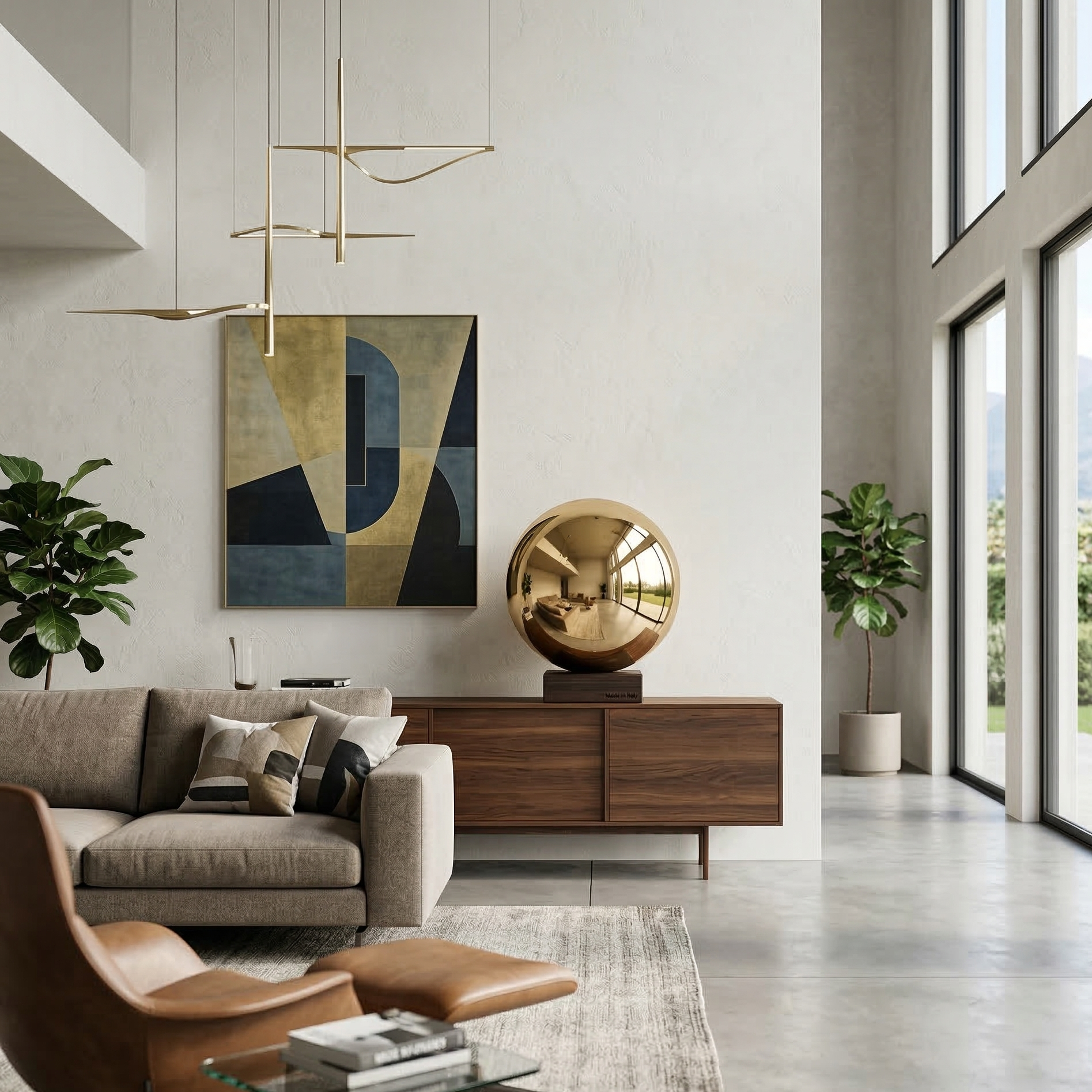 Questa scultura da tavolo non è un semplice oggetto decorativo, ma un esercizio di precisione formale. La perfetta sfericità dell’acciaio specchiato incontra la stabilità rigorosa di una base in marmo nero opaco, creando un contrasto visivo che cattura lo sguardo e riflette l’ambiente circostante.