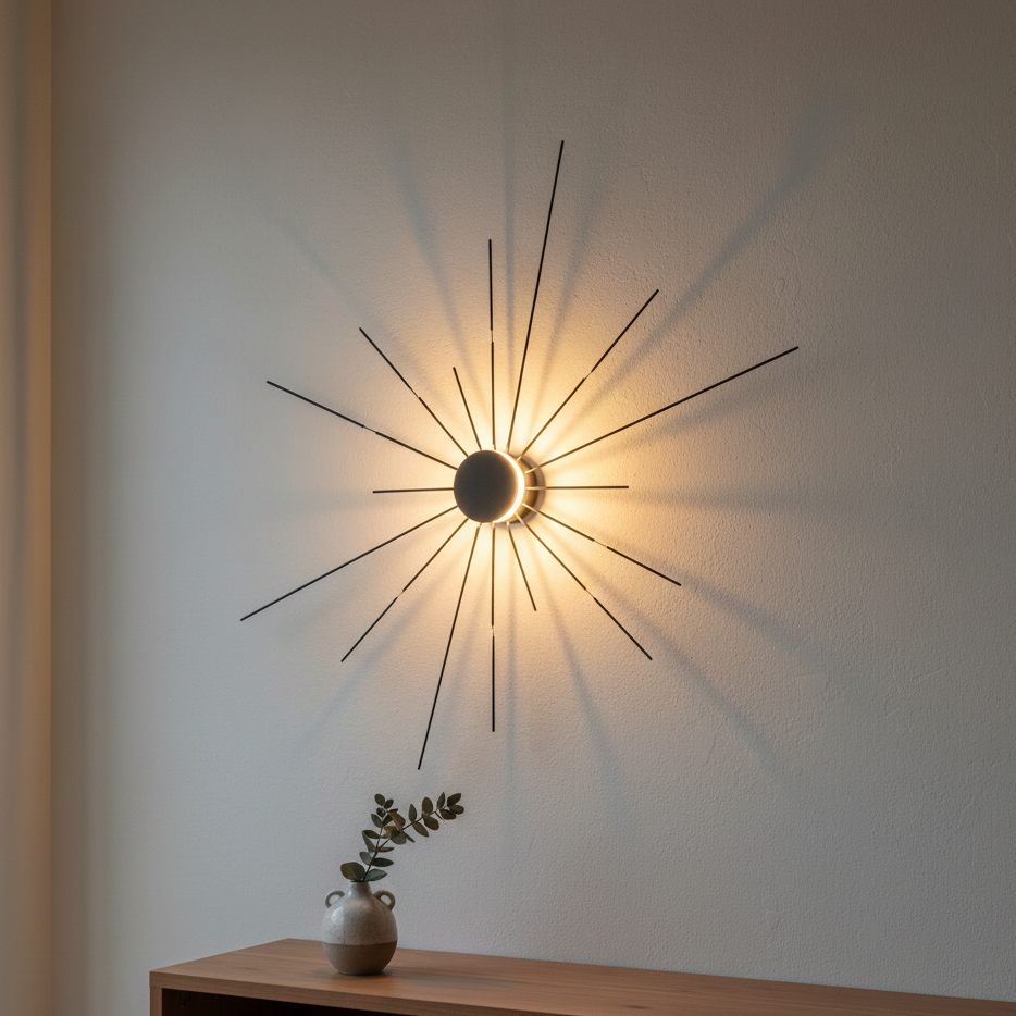 Sole diffonde una luce calda e omogenea nell'ambiente, creando un'atmosfera accogliente e raffinata. È dimmerabile da controllo remoto, permettendo di regolare l'intensità della luce in base alle proprie esigenze.