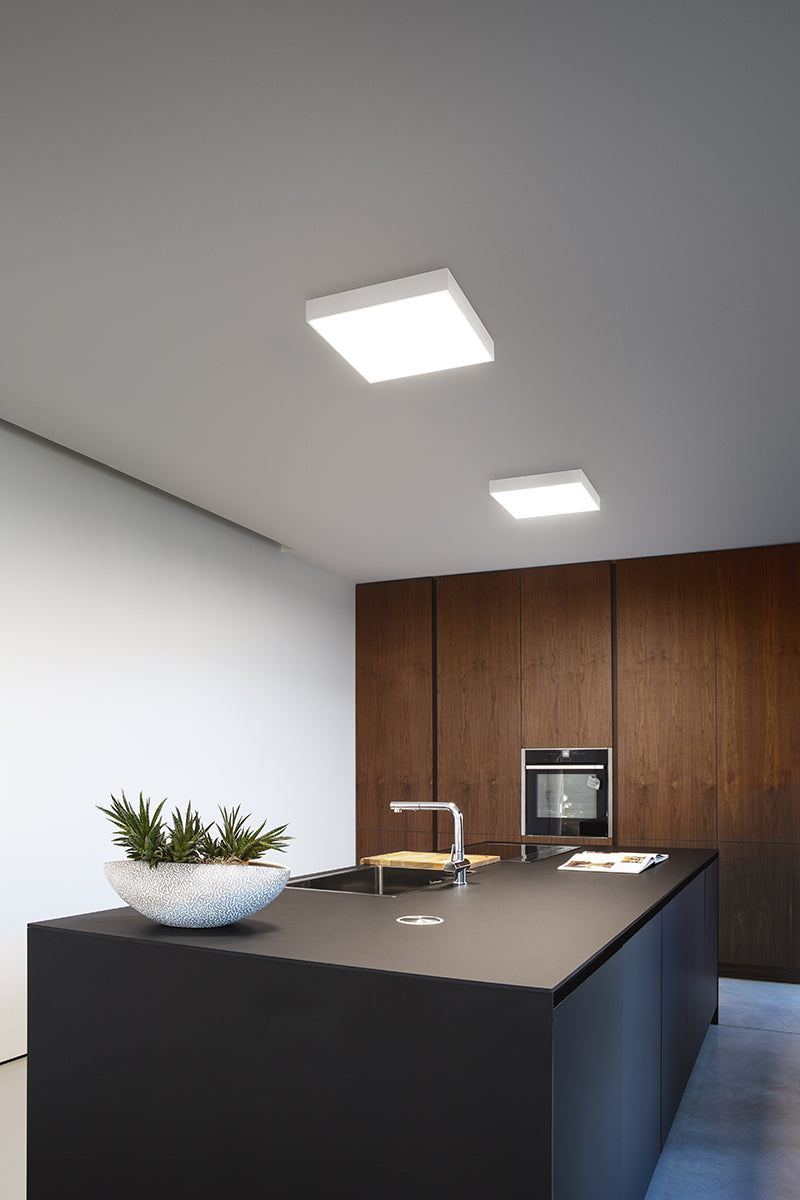 Square Horizon non è solo un corpo illuminante, ma un elemento architettonico che ridefinisce lo spazio. Caratterizzata da un profilo ultra-sottile e una silhouette rigorosa, questa plafoniera LED incarna il perfetto equilibrio tra estetica razionalista e tecnologia d'avanguardia.